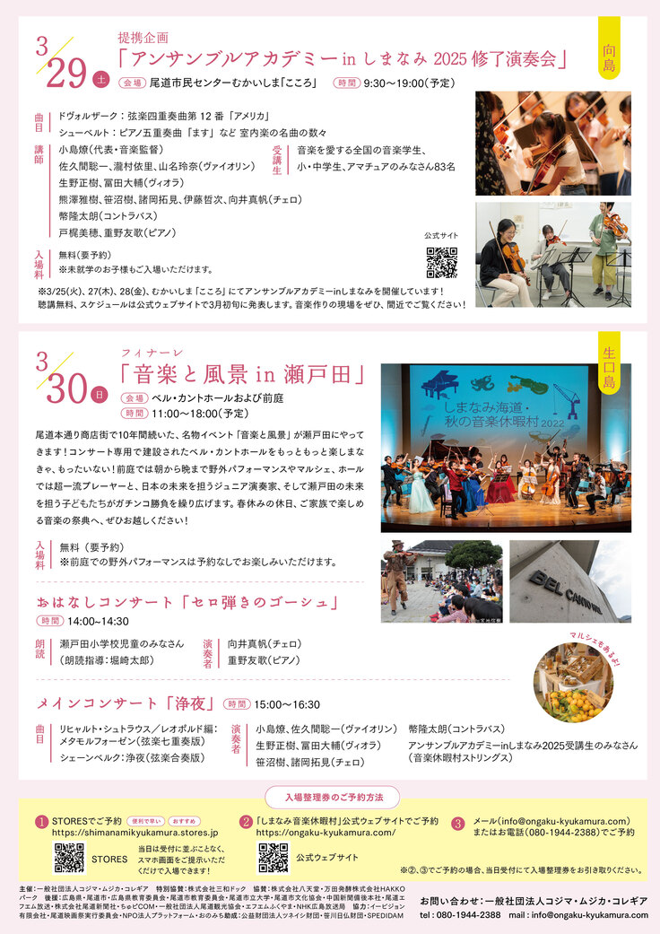 提携企画「アンサンブルアカデミーinしまなみ」ともども、春休みの尾道を音楽でめいっぱい盛り上げていきます!
