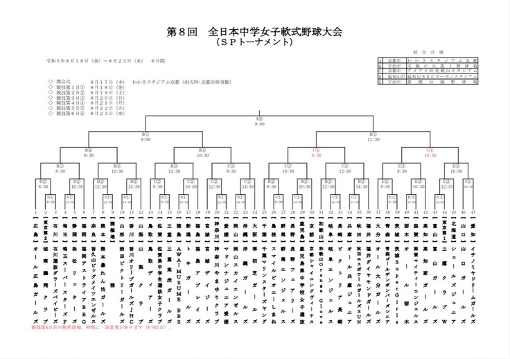 第8回全日本中学女子軟式野球大会(SPトーナメント)が開幕します。
