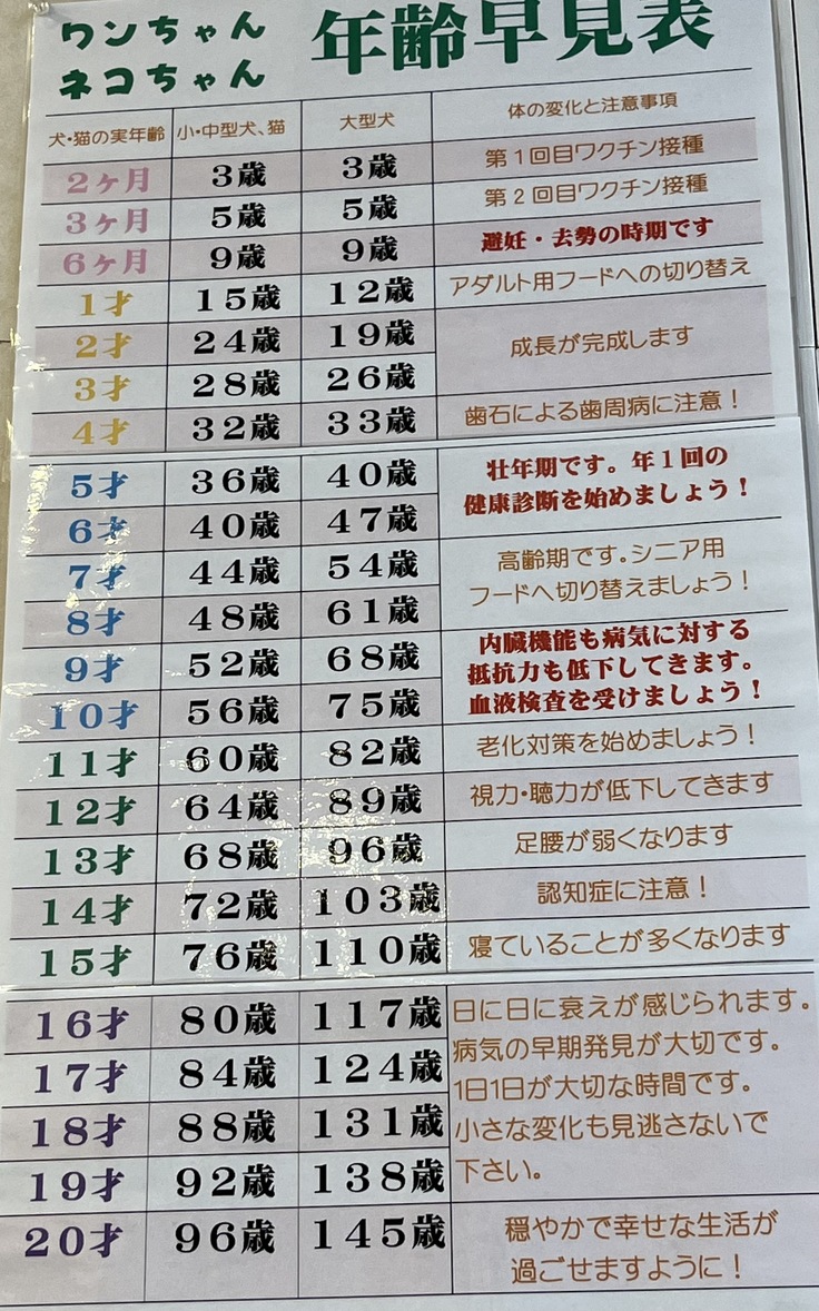 以前病院で見た年齢早見表によると、ポチタは現在15歳に当たるそうで、中学3年生くらいでしょうか。