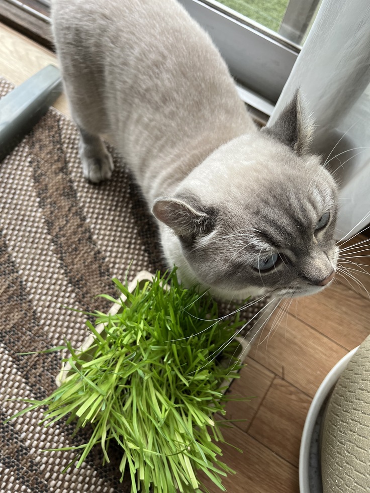 種から育てるのも、次の交換分を育てるのにタイミングが合わなかったり、結構猫草の維持に苦労しています。