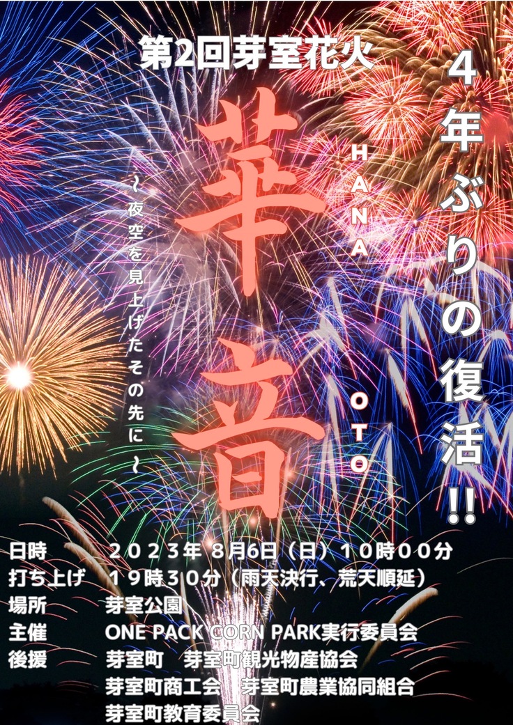 2019年に初めて開催した芽室花火~華音~2019は2014年に28年間続いていた地元の花火大会がなくなってしまい、芽室の花火大会を見て育った20代~30代の有志が今の子どもたちにもあの楽しかったお祭りに来て楽しんでもらいたいと開催したお祭りです。