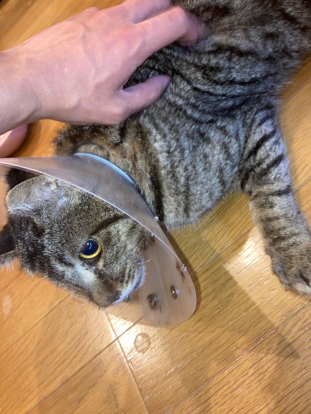 口が完全に閉じないからか、くしゃみが出るからか、涎が多くでちゃいます…( ; ; )