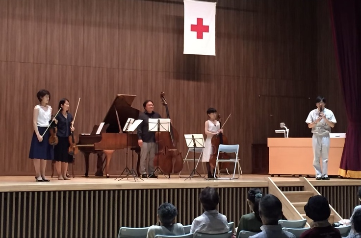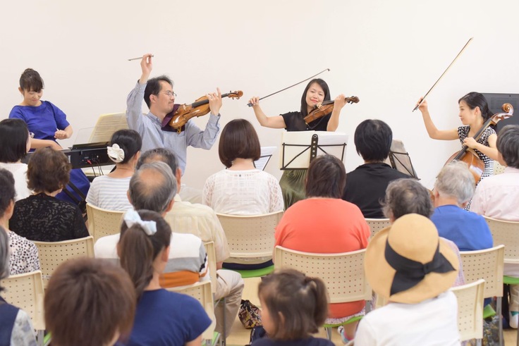私たちは東日本大震災が起こった一年後の2012年からご縁をいただき、年に一度、宮城県石巻市を中心に、『日本とドイツ・絆コンサート』という名前で、保育所、幼稚園、小・中・高等学校、公民館、仮設住宅集会所、病院などでクラシックの室内楽(少人数の合奏)コンサートを続けてきました。