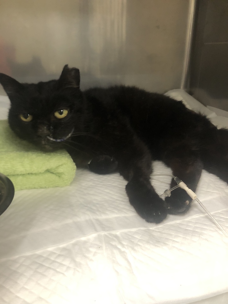 痛み止めの点滴がはずれ、缶詰も口から食べ、たまに猫パンチもするみたいです✨