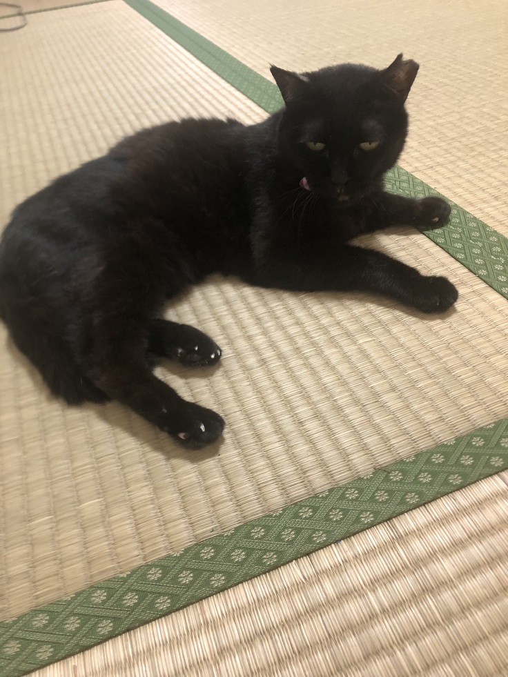 きなこは手術で毛を剃っていたところがだいぶ生えそろい、可愛い黒猫ちゃんに戻ってきました。歩行や排尿は全く問題ありません。