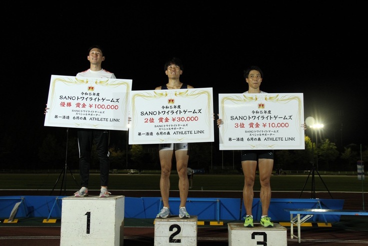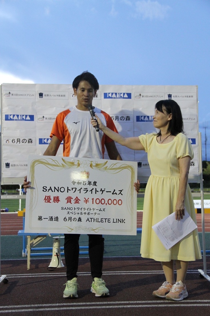 ※優勝者に10万円、2位の選手に3万円、3位の選手に1万円を進呈させていただきました。なお、賞金総額のうち、不足分のみ大会主催者であり本プロジェクト実施者である(一社)SANOスプリントが補填させていただいています。