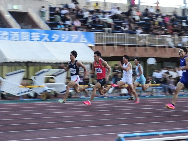 男子100mにおいては東田選手(関彰商事)が日本記録保持者である山縣選手(SEIKO)たちを抑えて優勝。タイムは9秒台に迫る10秒10。そのほかの選手も好走を見せ、見ごたえ充分でした。