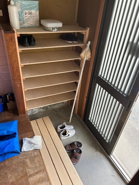 大家様の許可を得て、壁を抜く工事と玄関框の段差を解消する踏み台を地域の方が ボランティアで制作してくださいましたので材料費のみ支援金を利用しました。