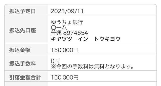 うち、15万円をキャッツイン東京へ振り込み、残金¥296,152をとらちゃんにかかった治療費に充てさせていただきます。