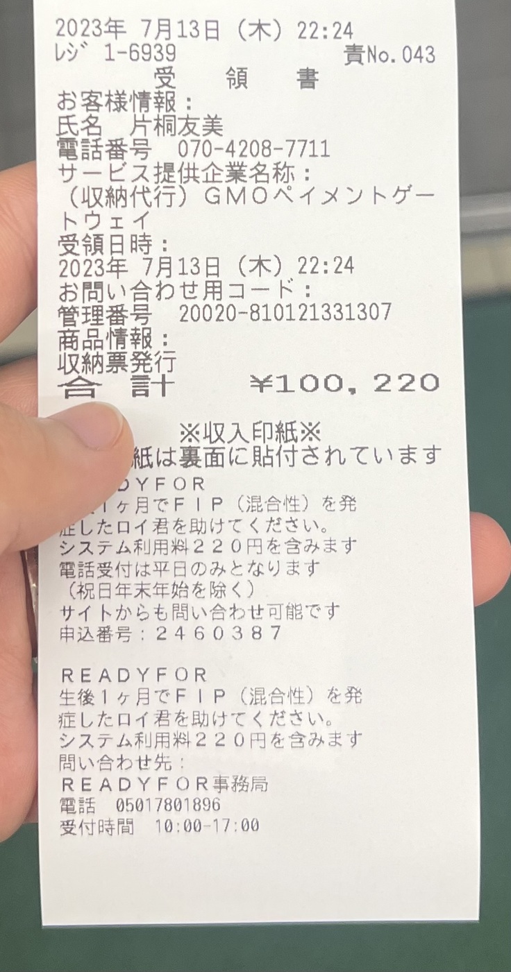 本日、2回目の代理支援金を入れさせていただいたことをご連絡差し上げます。