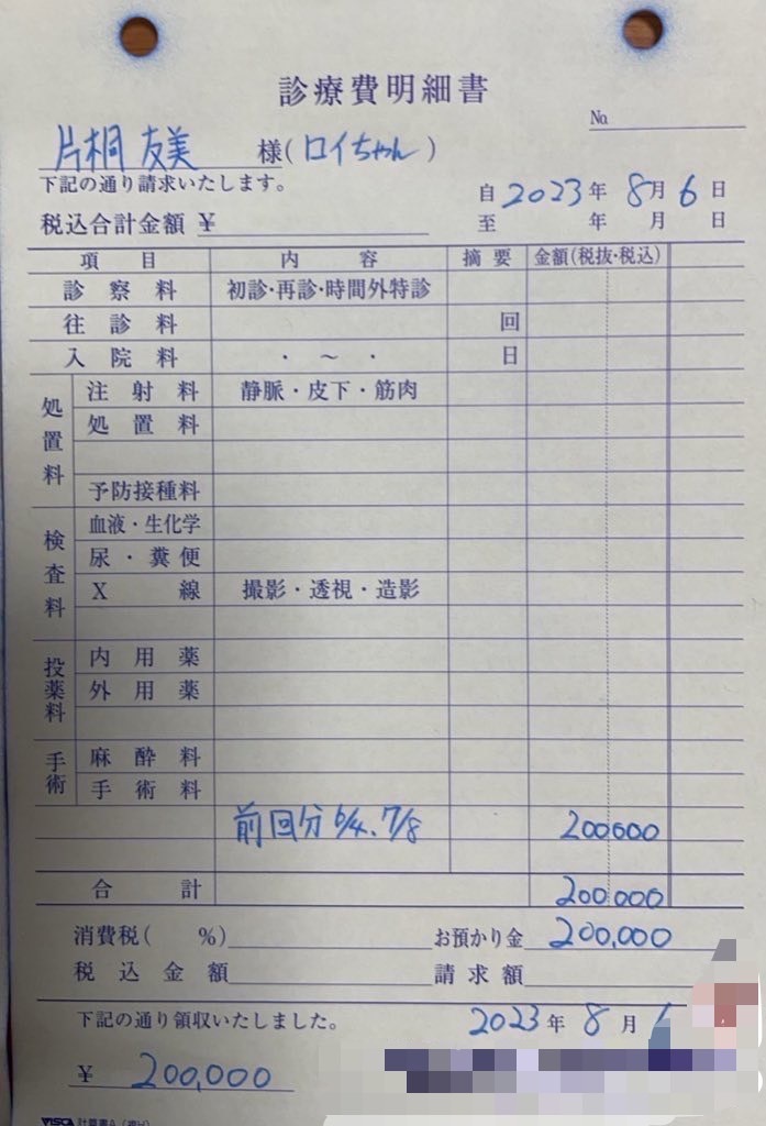 残りの寄付金は、ロイちゃんが入院した費用+血液検査代などに充てさせていただきました。