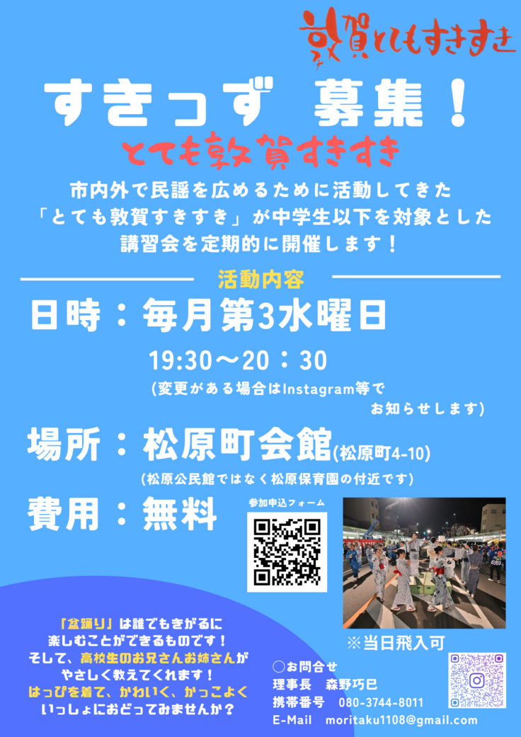 いただいた支援金のおかげで、新たな浴衣で様々なイベントへ出演させていただけたことは勿論、「すきっず」という子どもたちを対象とした独自の講習会を行うことができました!