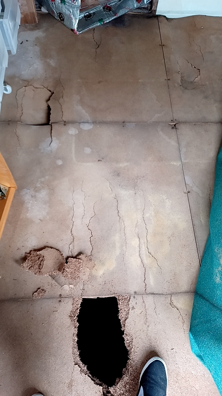 絨毯が何重にも敷かれていたのを剥がしたら床には穴があいていた。