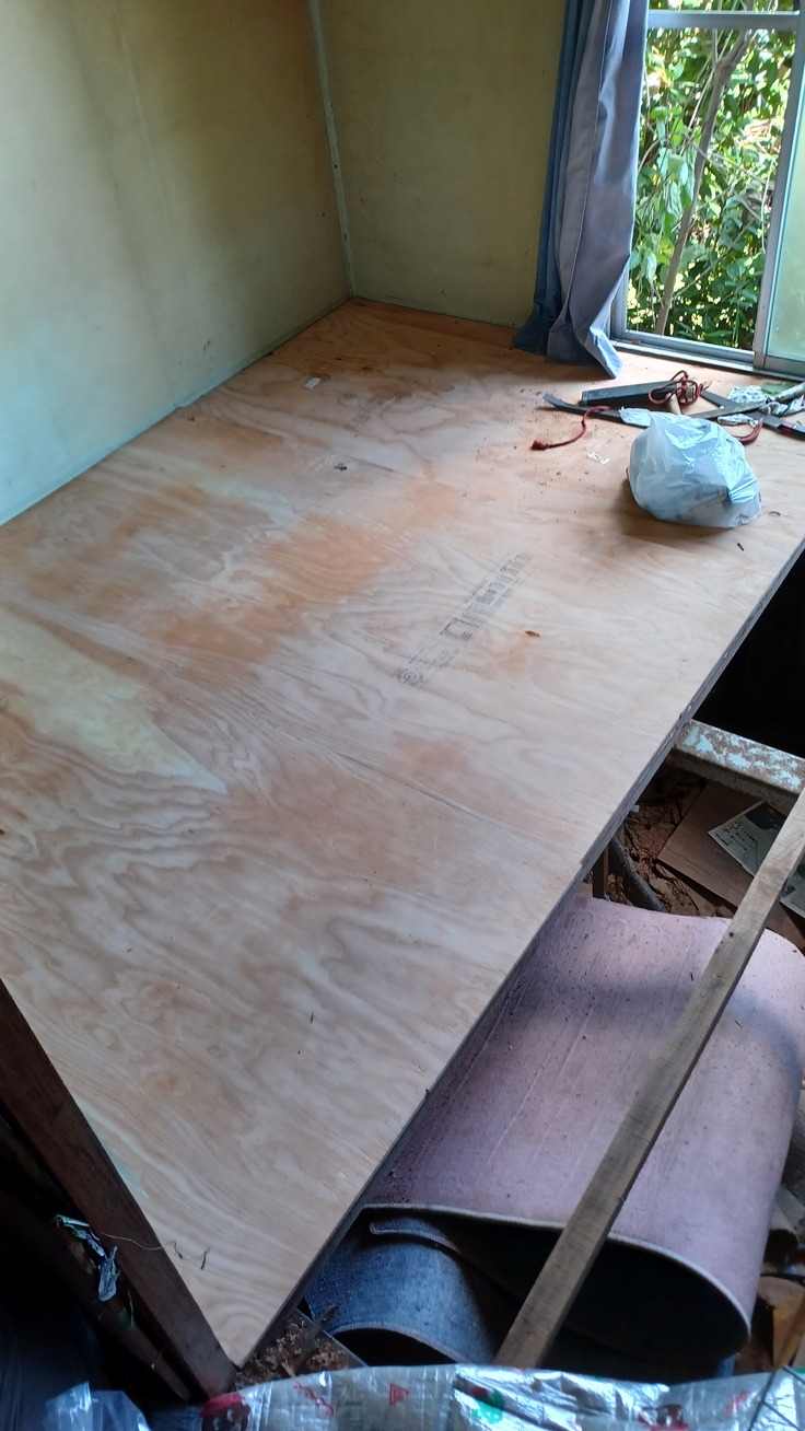 Oさんと一緒に床貼り開始したのは