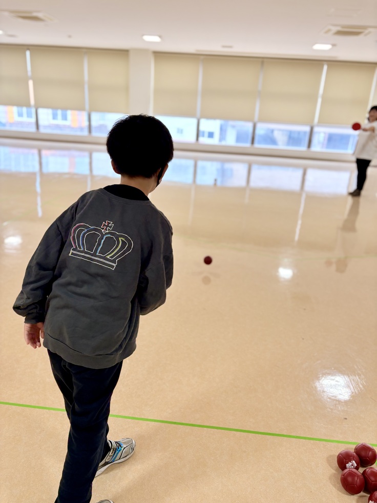 今回のメインアクティビティは「ボッチャ」という、パラリンピックの正式種目にもなっている競技の体験です。先生方をお招きして指導していただきながら、2対2のチーム戦で楽しみました。