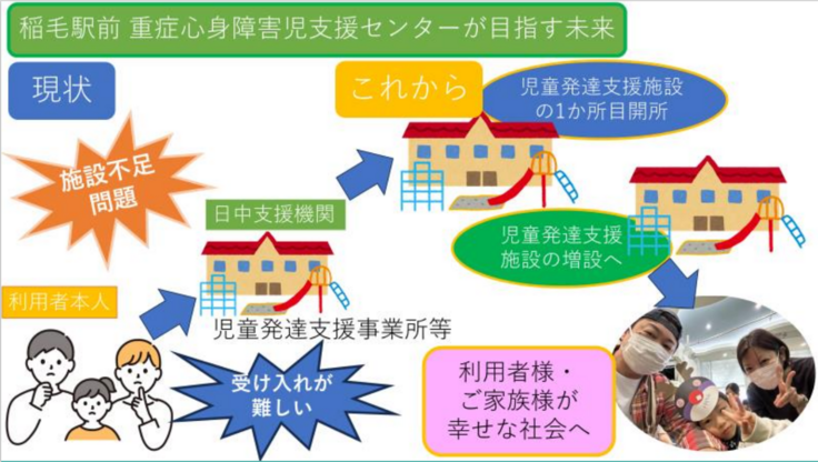 障害を抱えるお子様の家族とお子様ご自身が心から安心できる場所を作る、この目標を実現すべく、開所に向けて準備に邁進しております。
