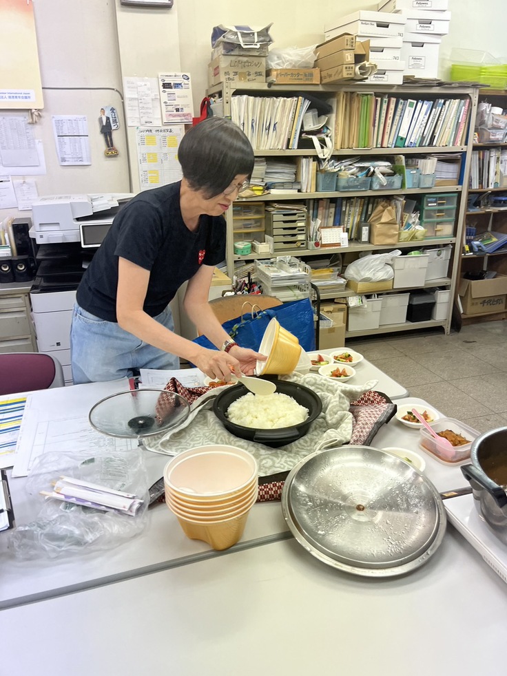 なんと今日の準備委員会には事務のお姉さまよりカレーの差し入れがありました!みんなで美味しくいただいてから作業開始となりました。このカレー、委員長の頑張りを認められた事業が佳境に入ってくると差し入れてもらえるというレアもの!夏野菜とひき肉がたっぷり入ってとても美味しかったです。