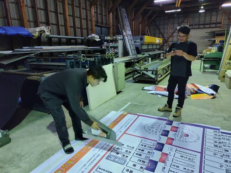 今週末開催の朝市の為に、ビジョナリーシティ委員会にて19:30に事務局に集合し、最終の確認と備品等の制作、そして買い出しを役割分担して行いました。