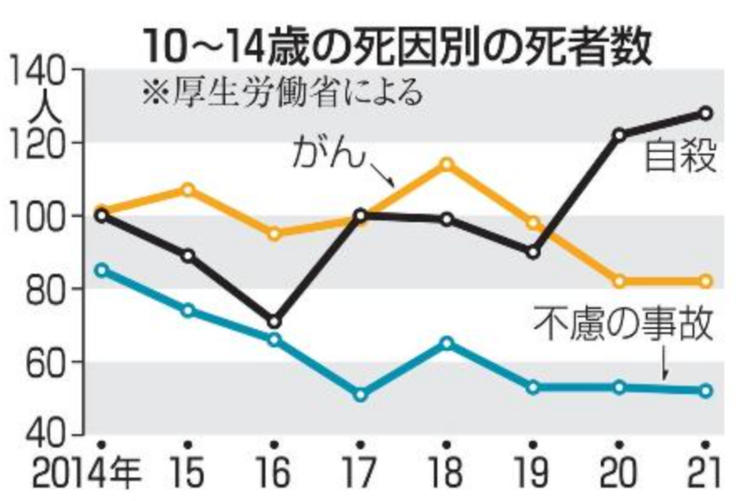 日本の十代の死因トップが自死。30万人を超える不登校。