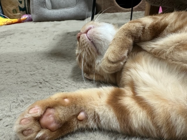 闘病中は肉球がカサカサでしたが、ぷにぷに肉球に戻りました!!!
