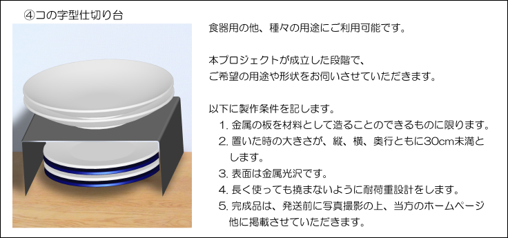 ④支援額 ¥22,000:コの字型仕切り台(寸法はご希望に副います)数量制限なし