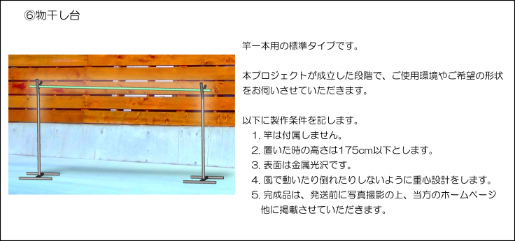 ⑥支援額 ¥98,000:物干し台(寸法はご希望に副います) 数量制限なし