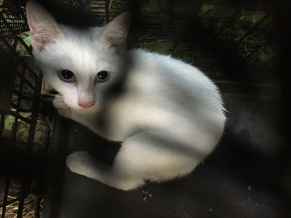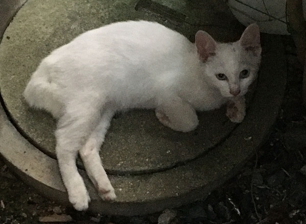 母猫がいない間、この子が迷子になるのではないか、できればこの子も保護しておきたいと思いましたが、怯えて捕まりませんでした。