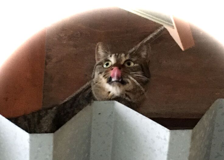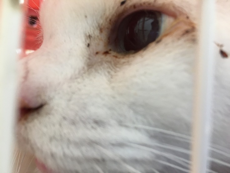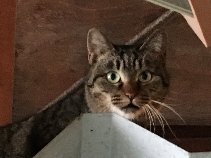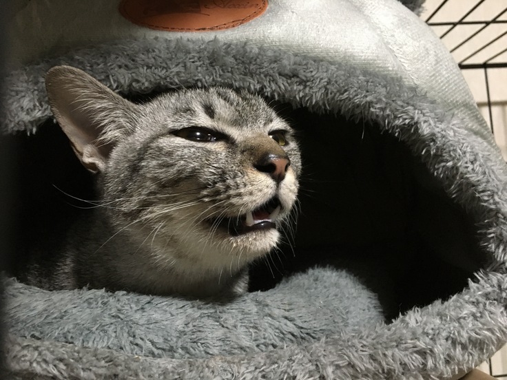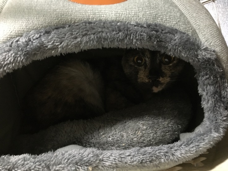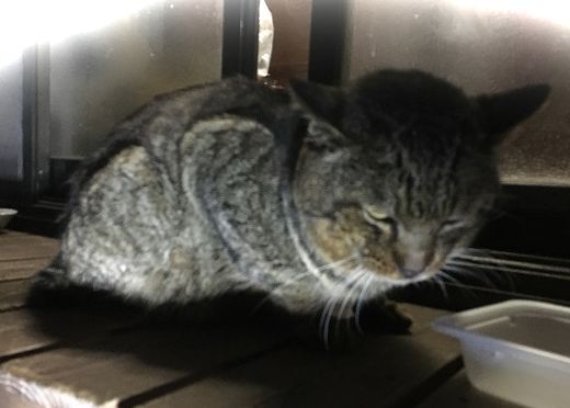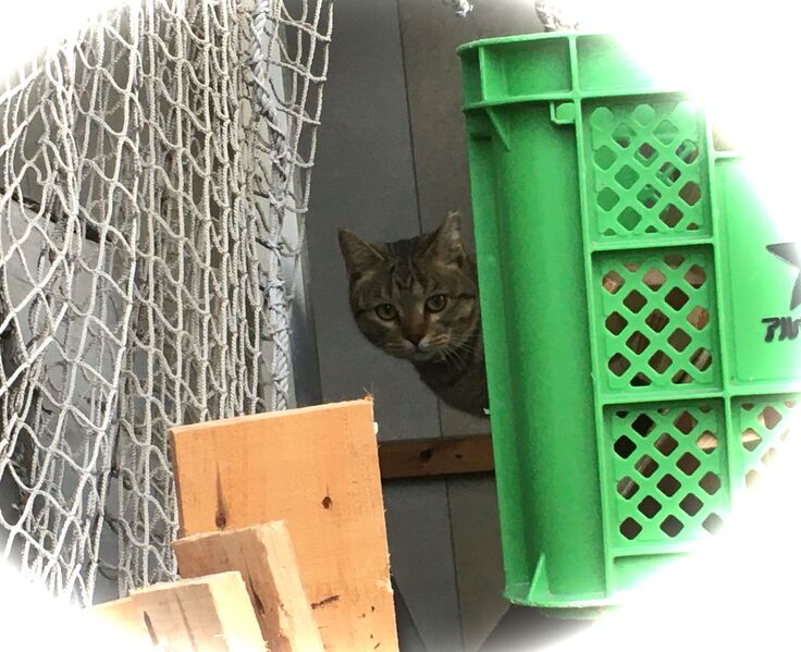 17:59 避難所にて。エイズ陽性のため、他猫とは時間差でフリーになるナオミ。