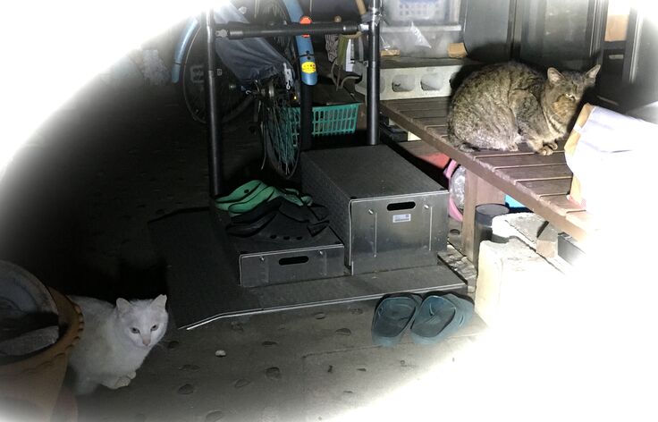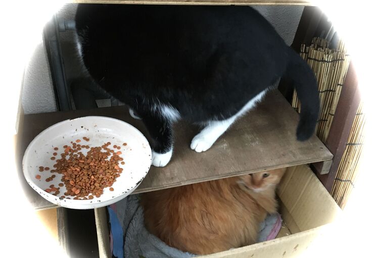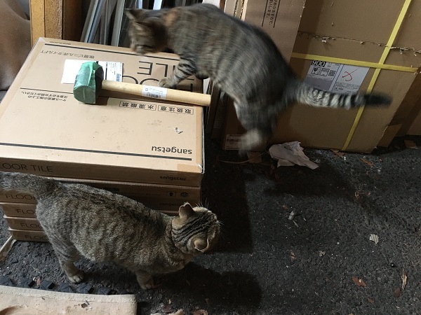 17:19 ジブリ邸 ぴやくん、大らかな茶トラ、カイトくん、幻のサビの住みかです。