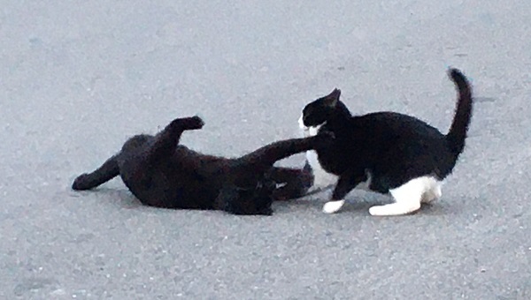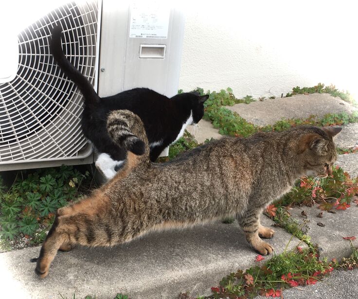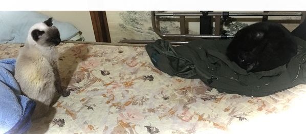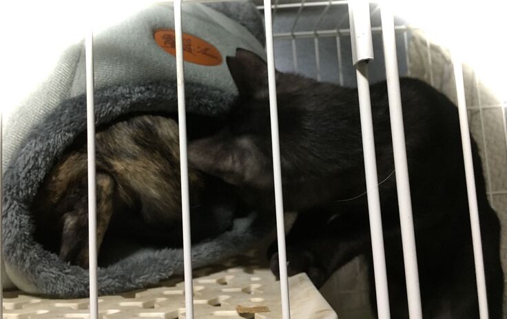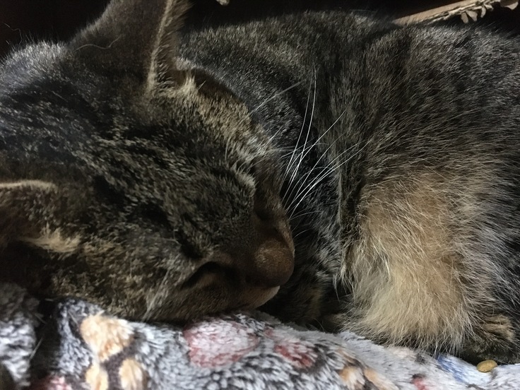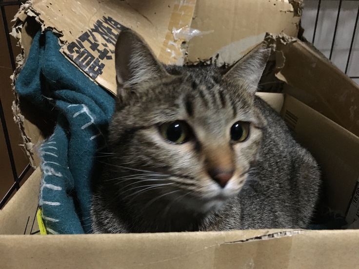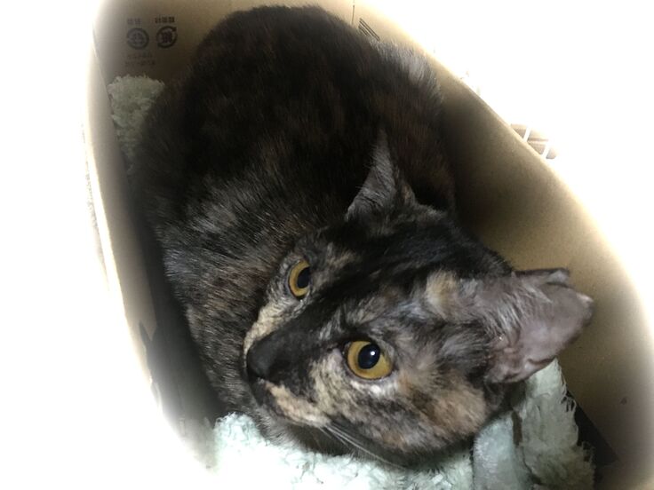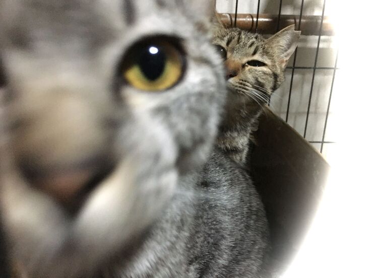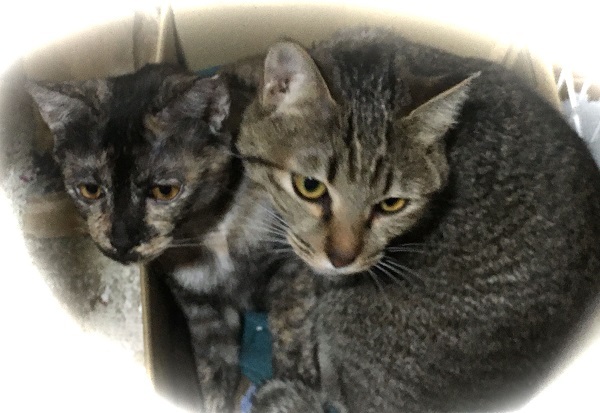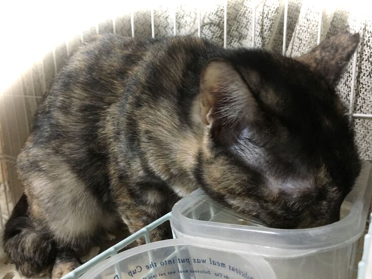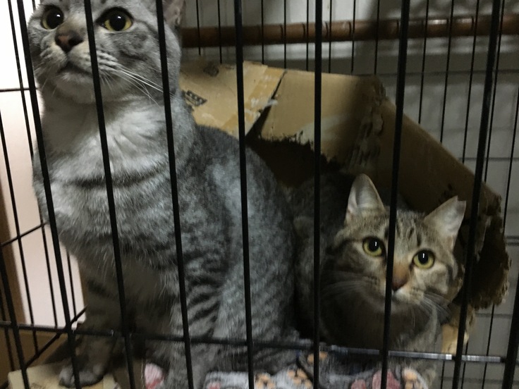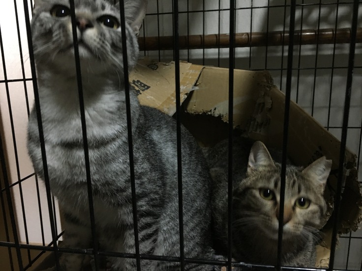 18:36 避難所の室内組 銀縞とサビが不妊手術を受け、耳カットつきで戻ってきました。
