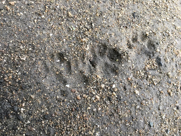 田んぼにはこの他にも、深い爪痕のはっきりした足跡や、ザリガニやタニシの殻が去年も落ちていましたので、タヌキやアライグマが来ていると思います。