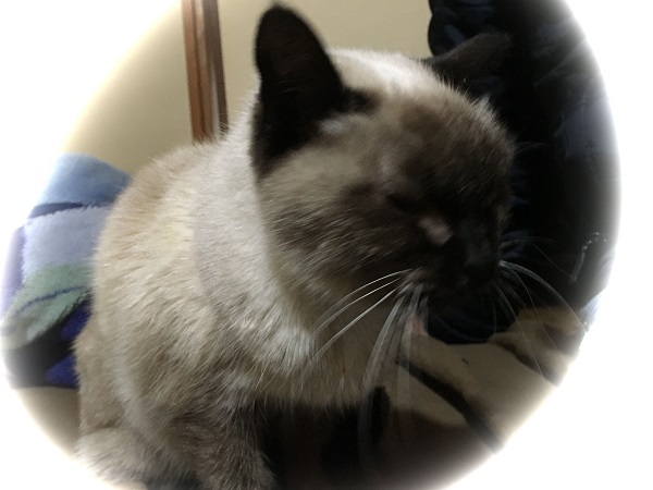 シャムたんは押入れの中でお休み中でした。この後点滴です。