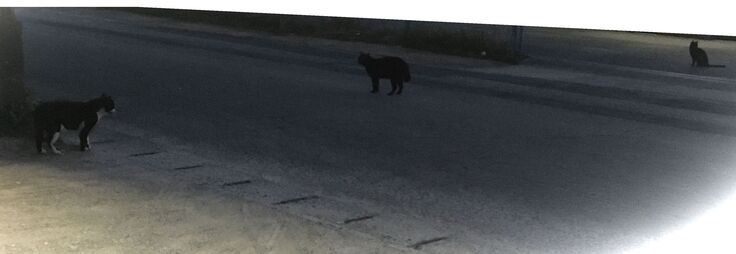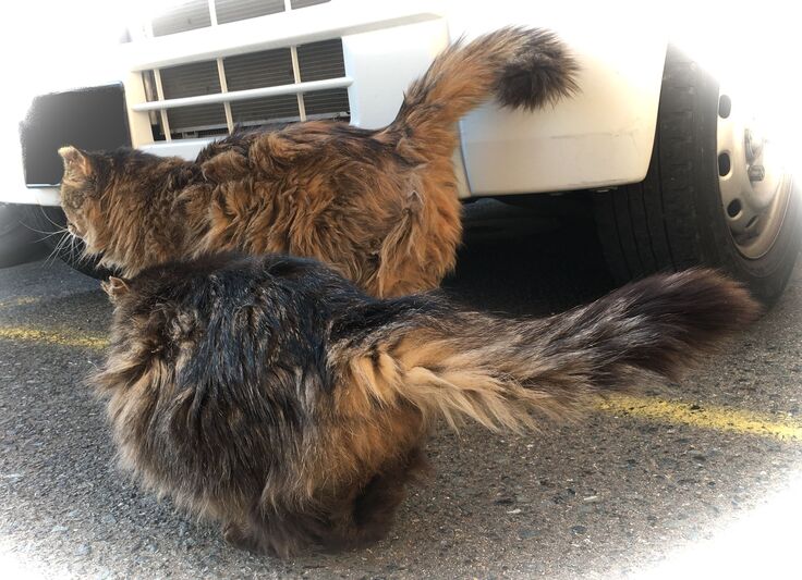 西川のりお邸周辺で。おおらかな茶トラと器の小さい子がいます。