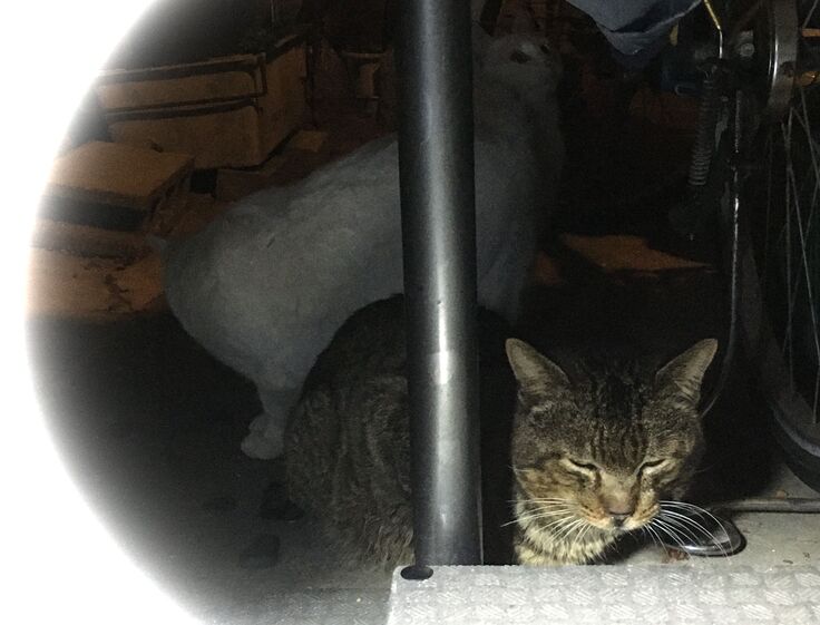 月子、ペルソナ、スパルタというメス猫たちの出産が重なる中で、劣位の個体だったのだと思いますが、その後に産まれた子猫のうち、ぴやくんが生き残り、立派なオスに成長してからは、表に出てきて一緒にくつろぐ姿も見せるようになり、よかったねと声をかけたものでした。