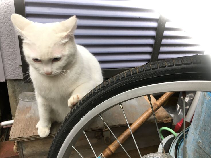 久しぶりに、やまだ電機(仮名)の緑の径に来ました。おおらかな茶トラがいます。