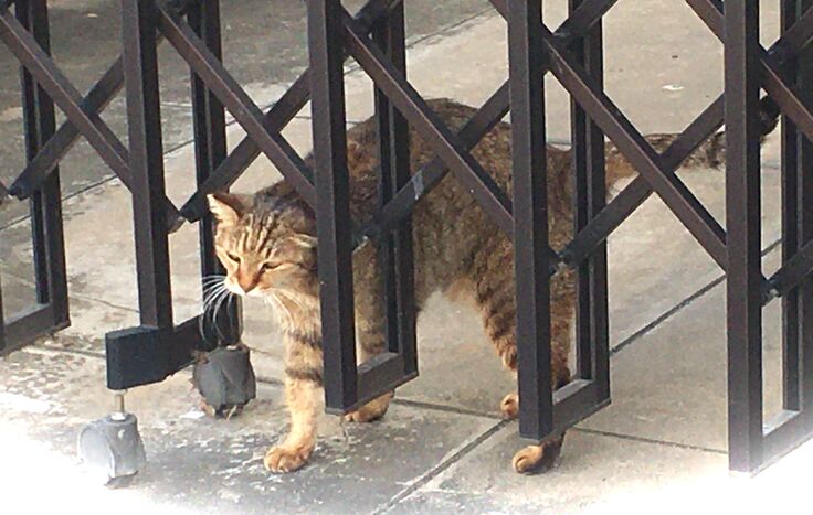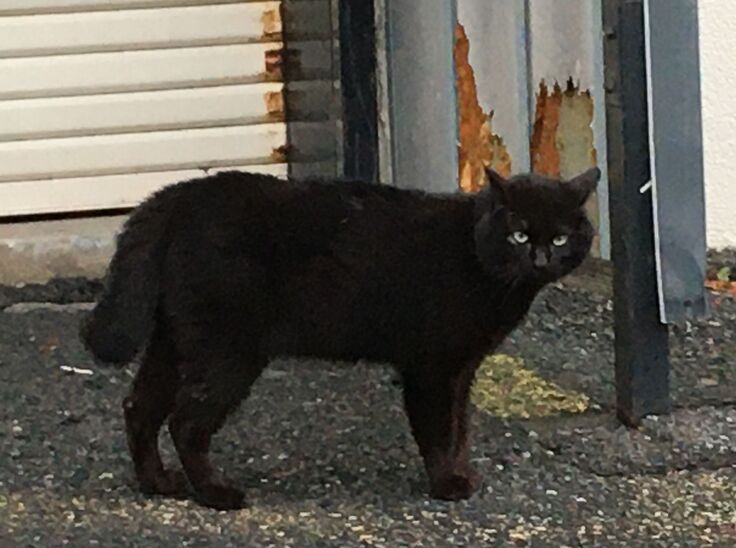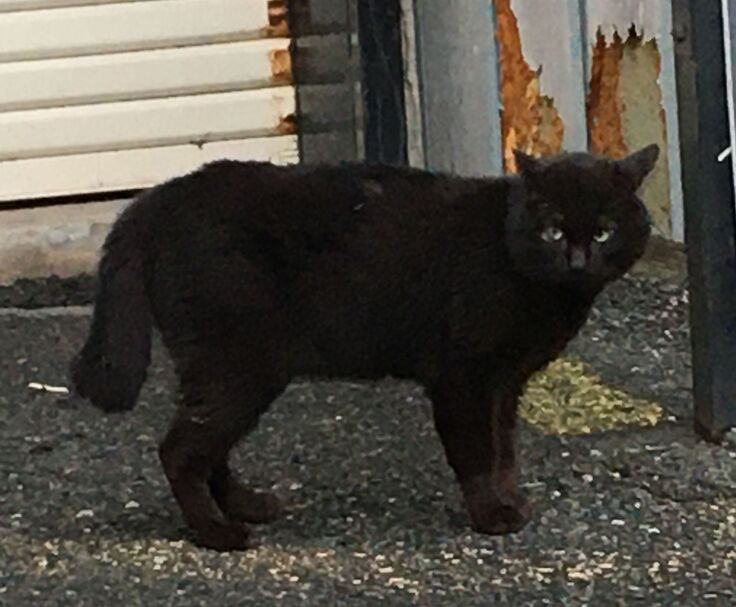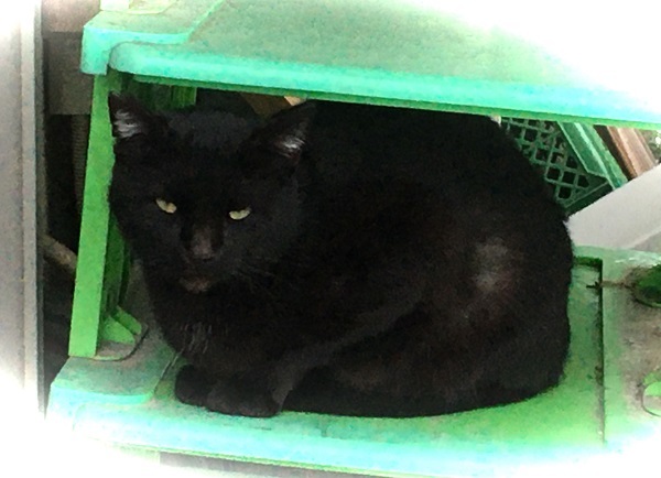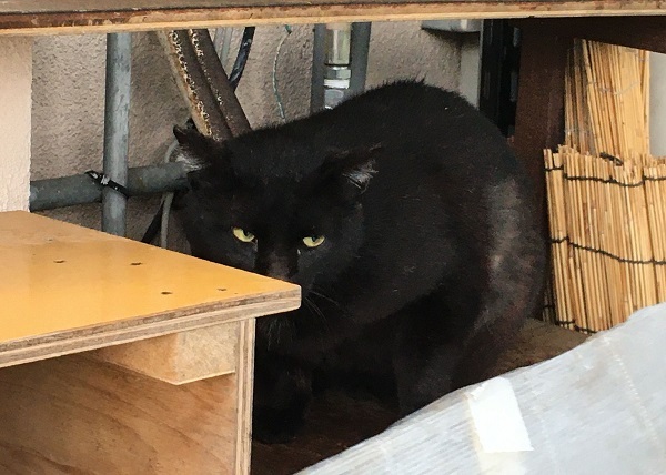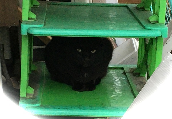 信頼できるエサやりさん、新たな場所の黒猫5人家族の事業所へ。
