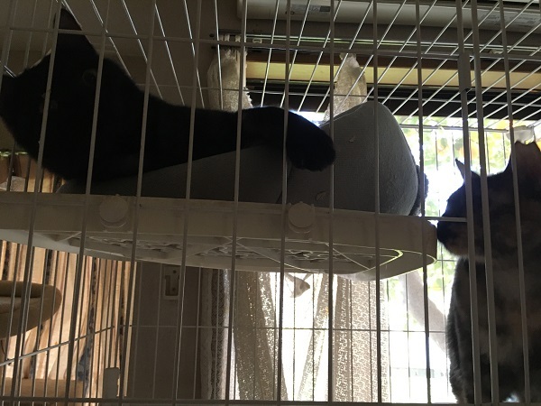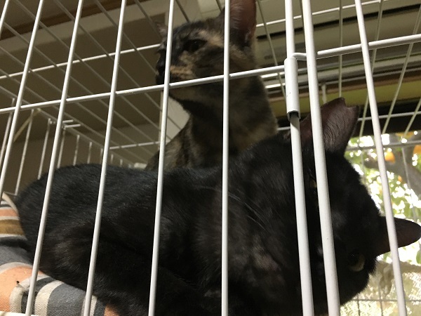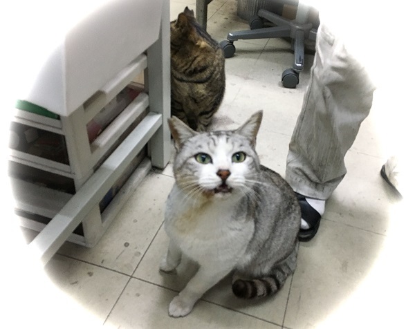 場所②のゴハンの時間です。ぶぅにゃんとことりちゃん。