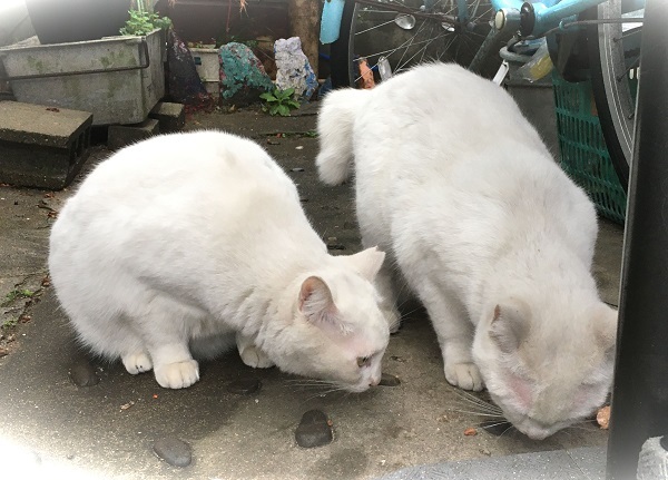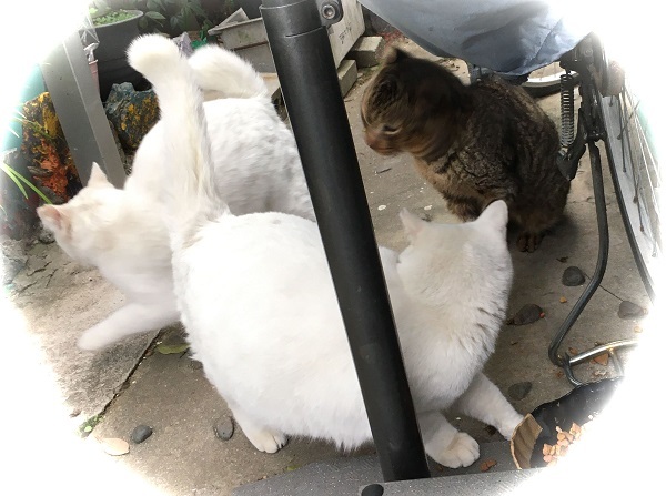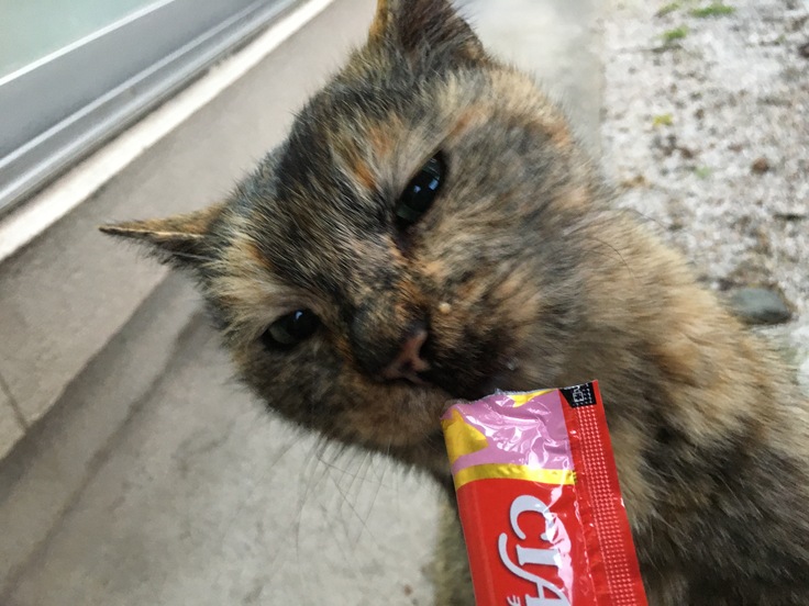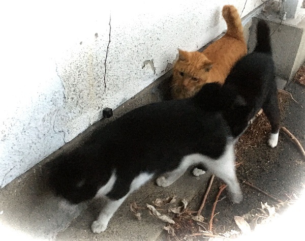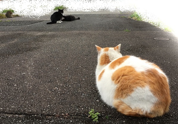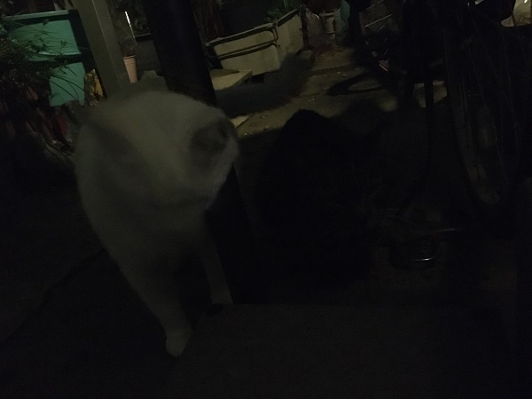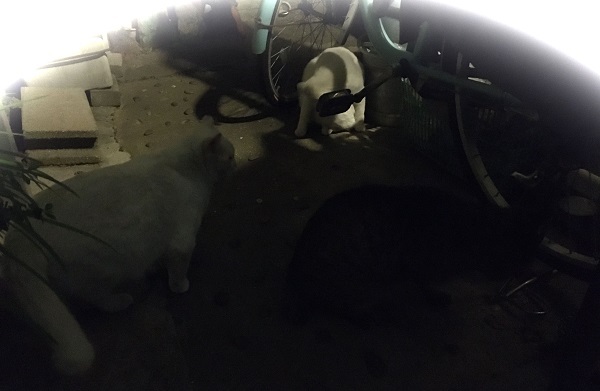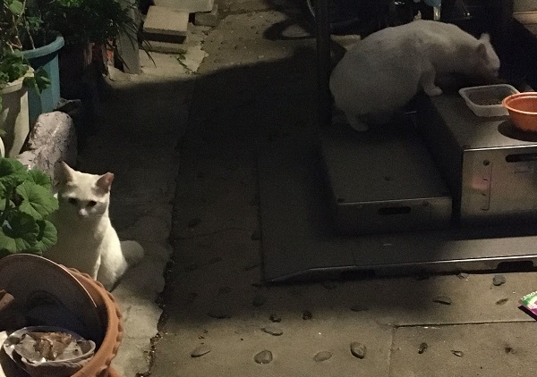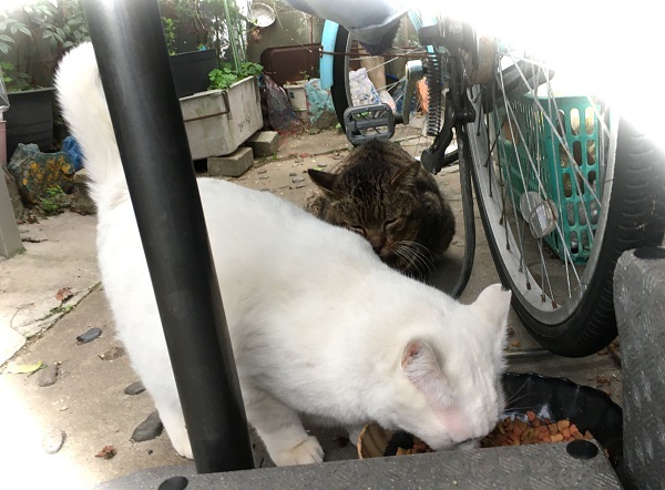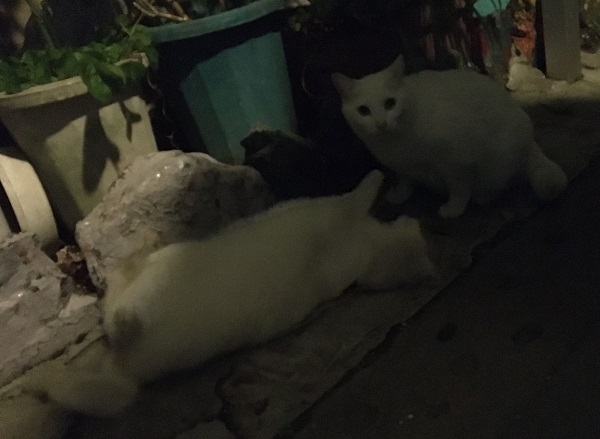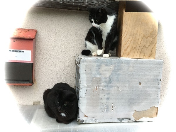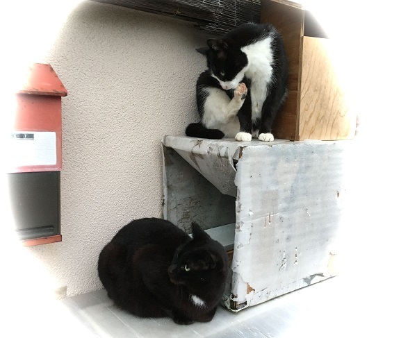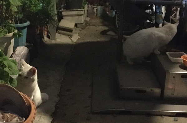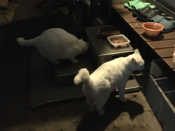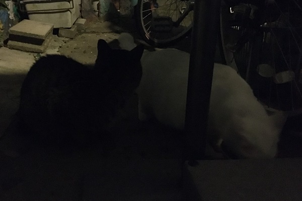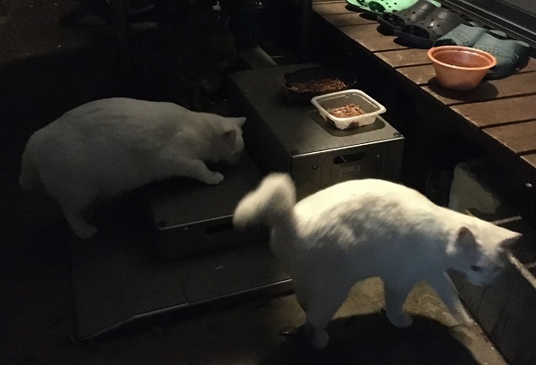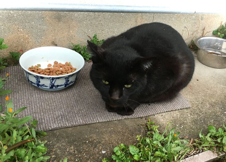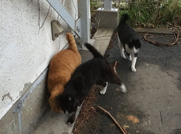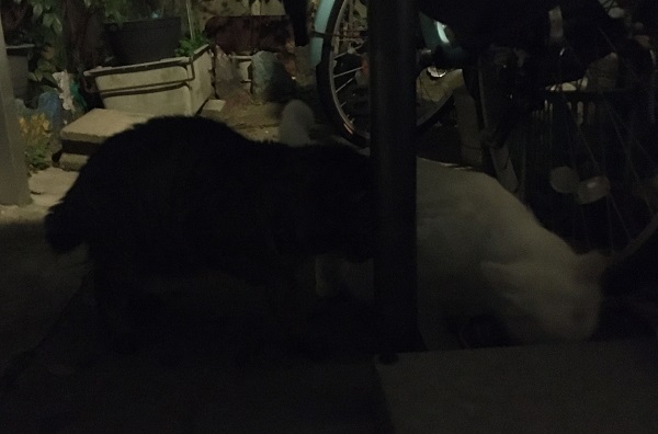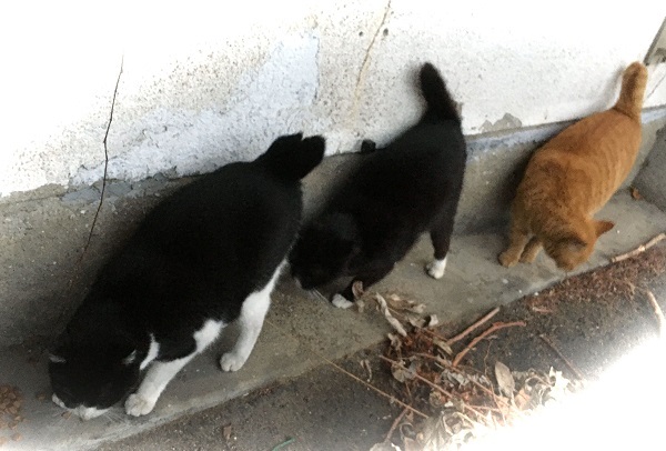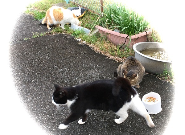 黒猫5人家族のエサ場にて、ぼたんちゃんはやっぱりいない(T_T)