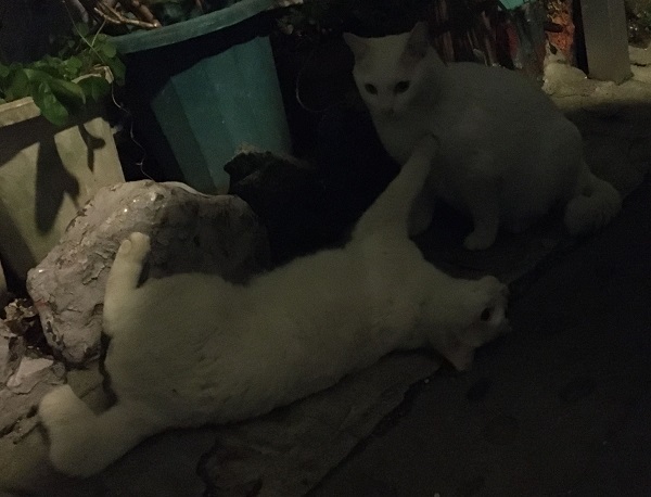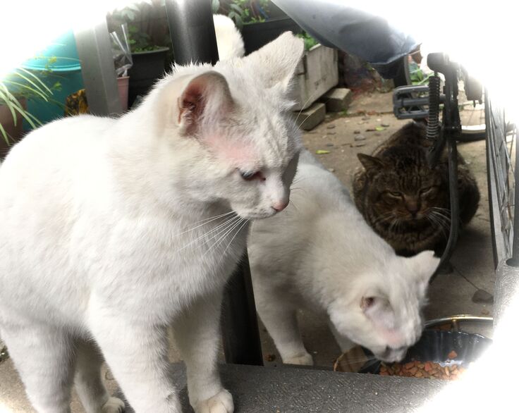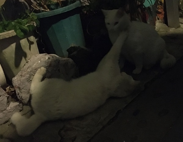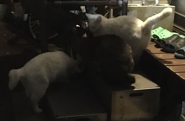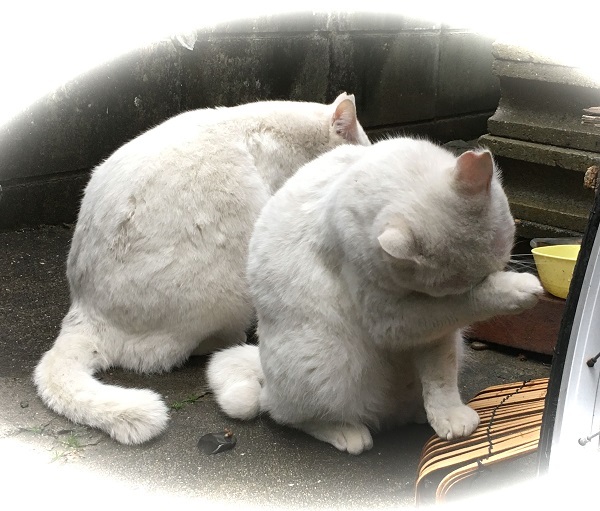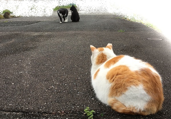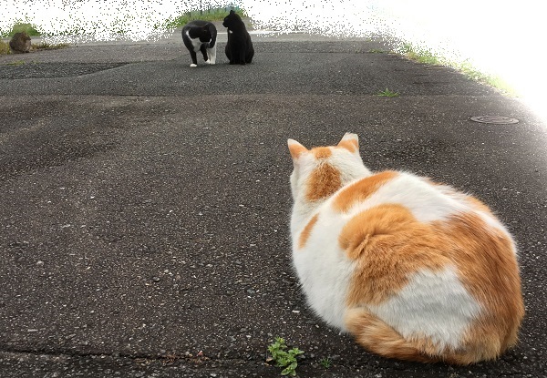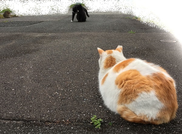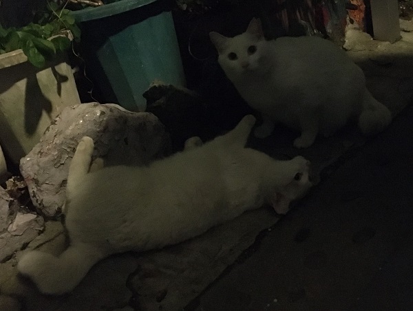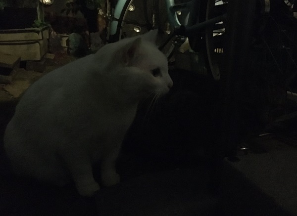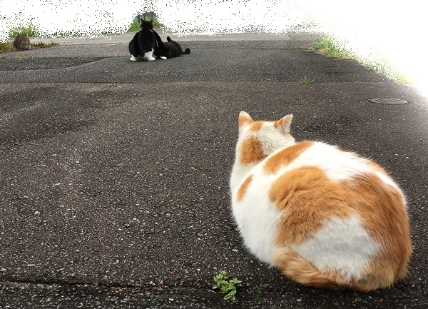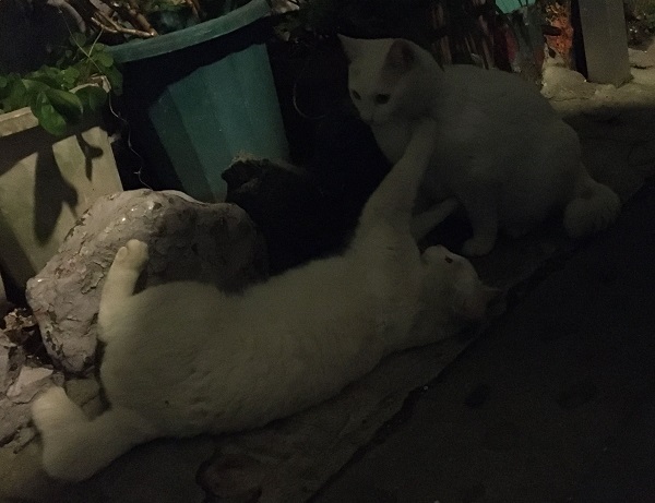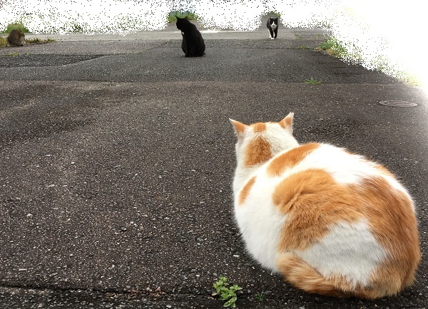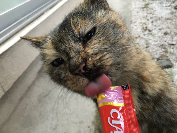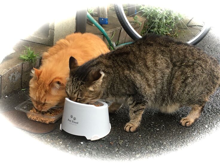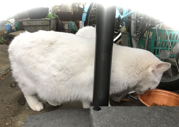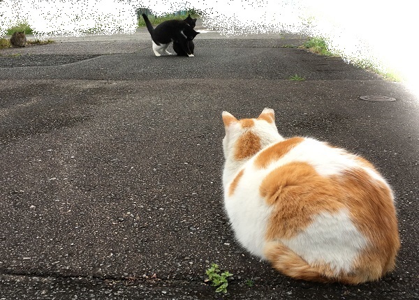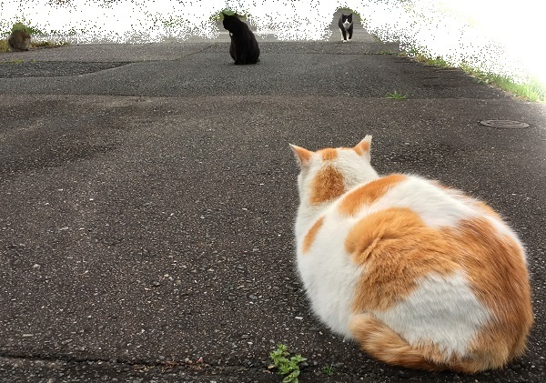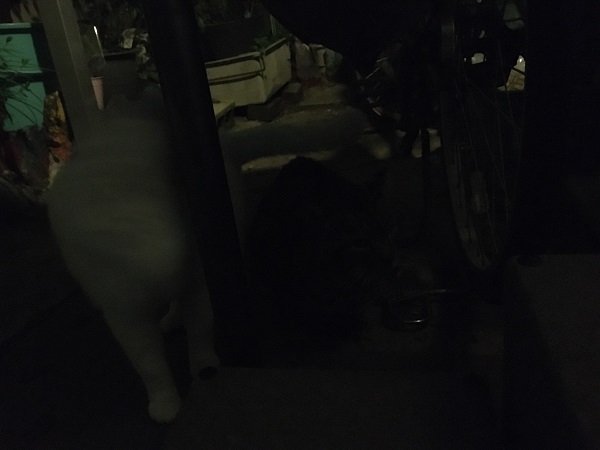 黒猫5人家族のエサ場にて、ぼたんちゃんはやっぱりいない(T_T)