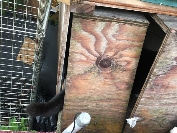 廃材で作られた棚の奥から、だれかのしっぽが。