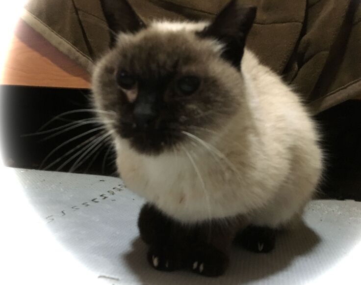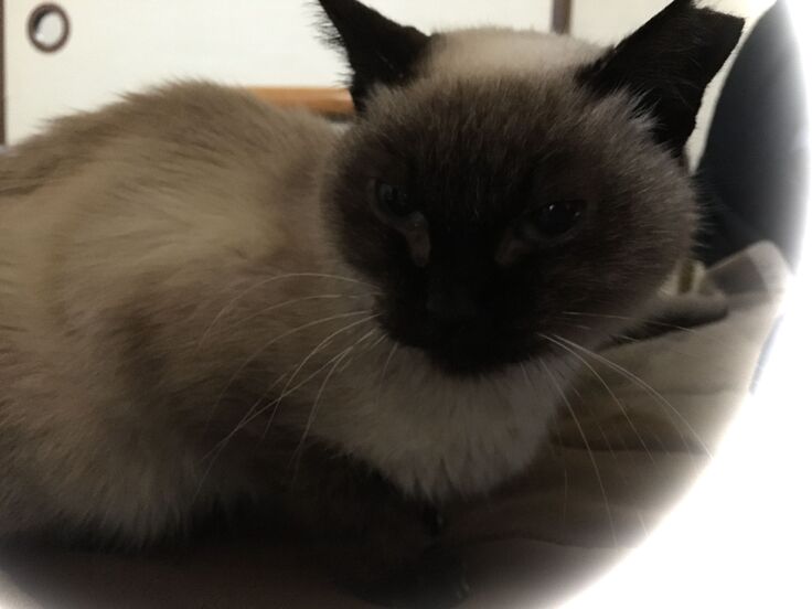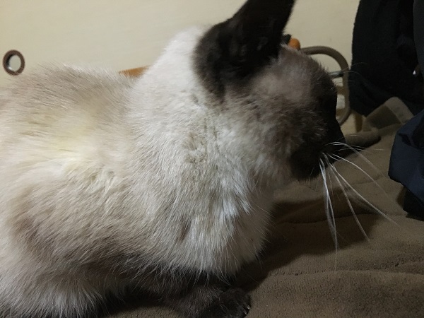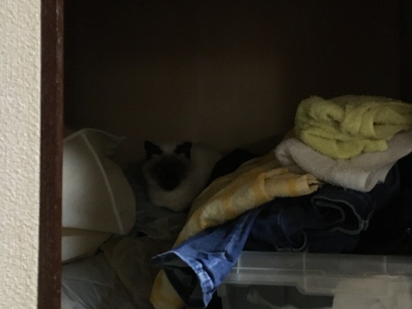押入れが落ち着くシャムたん。点滴のお時間です。