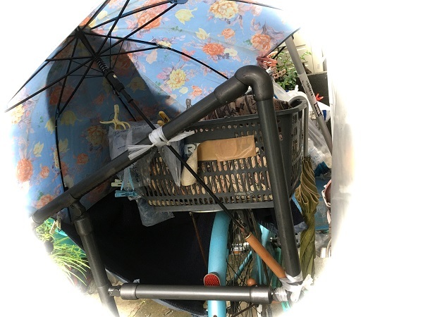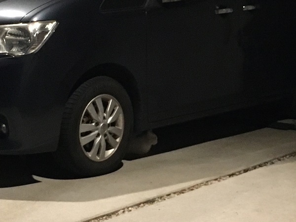雨宿りするそらくんと、よく働いてくれたカー子。