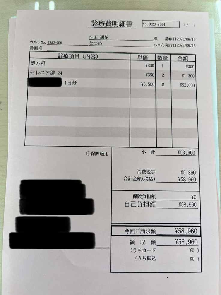 獣医師の説明によると「薬は国内未承認のため高額な治療費になる」「毎日同じ時間に84日間投薬し続けなくてはいけない」