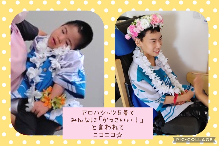 アロハシャツはやっぱり人気で、着替えてレイをつけて、みんなに「似合うね〜」「かっこいい!」と言われて、ニコニコでした(^^)