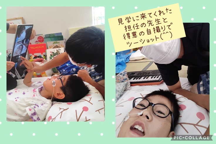 ひさしぶりに先生に会って、嬉しかったようです。「自撮りでツーショットを撮りたい!」とのことで、先生といいお顔でツーショット撮れましたー(^^)