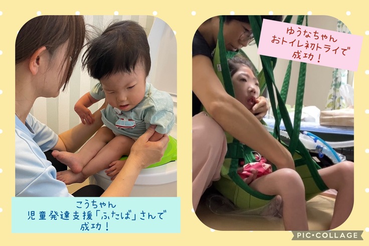 ゆうなちゃんのママは「ふわっとでのおトイレの様子を見てみたい」と夏休みに見学に来てくださいました。それから数日後、初トライで成功!その後も何度も成功しているようです。ゆうなちゃんは、今までおトイレに座る機会がなかっただけで、よくわかっていて力があるってことですよね!すごいですね〜(^^)