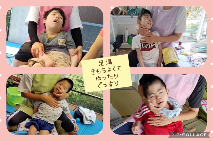 筋緊張が強かったり、発作でピクピク落ち着かなくても、あったかい足湯に入るとゆったりして、ぐっすり。