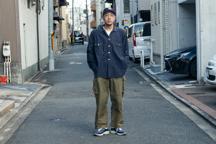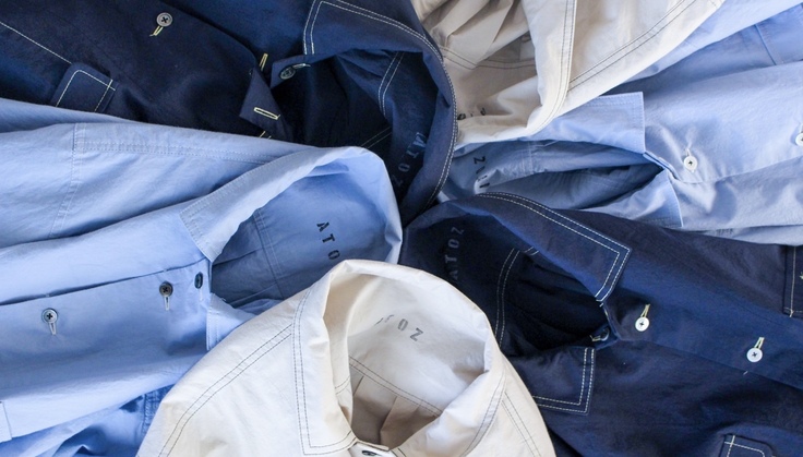 ATOZ SHIRT 大の服好き4人が集まって、古くて新しいシャツを作った。 襟はフランスの古いワークウェアに見られる緩やかなカーブを踏襲。 トップボタンを閉めたスタイルでも、カッチリした雰囲気ではなく、どこか優しさを感じる仕上がった。 フロントには、THEアメリカンワークのディテールであるフラップポケットを配置。 襟とは対照的に男臭さを感じるデザインだが、この2つが組み合わさると、ちょうどいいバランスだ。 またアメリカンワークのディテールは、袖口にも採用。 40年代のワークシャツに見られるストームカフスは、機械操作のときに袖口が巻き込まれにくいとか、風が防ぎやすいとか、由来には諸説ある。 なにはともあれ、かっこいいディテールじゃないか。 バックヨークのギャザーにも注目してほしい。 およそ100年以上前、当時の羊飼いや牧畜業者等が作業着として着用していたビュードコートのバックスタイルと、40年代アメリカ海軍のシャンブレーシャツのバックスタイルをミックスしている。 一直線に入る無機質なステッチと、たっぷりとしたギャザーの組み合わせ。 洗いを重ねるたびに、どんどん表情が豊かになるだろう。 表情が豊かになるといえば、今回のシャツに採用した近江晒し生地についても、語らずにはいられない。 近江晒し加工は、近江上布として有名な滋賀県愛荘にて培われた伝統技法。 まずは生地に灰汁をかけながら10日間ほど日光に晒し、続いて生地を釜に入れ灰汁で焚き、また日光に数回晒す。 最後に木臼でつき、水で洗い、さらに日光に数十日晒して、ようやく完成するのだ。 パリッとしたハリに加え、モールスキンのような起毛感のあるこの生地は、このシャツを作る原点となった。 本当に肌触りが良く、オールシーズン着用できる万能なシャツ。 左右の前立てにボタンボールを開けているので、お好みでチェンジボタンをつけたり、拝みボタンをつけたりしてアレンジ可能だ。 どんなスタイルにでもマッチする、ATOZのポリシーを表した一枚が、このATOZ SHIRTである。