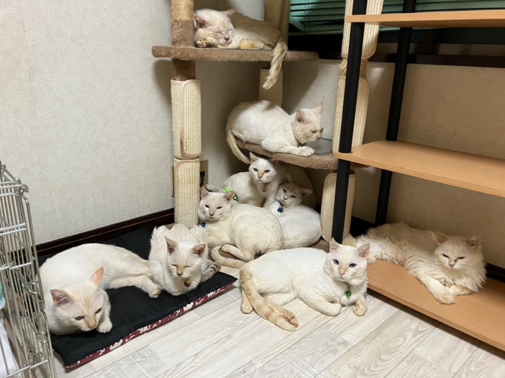 全頭の避妊去勢手術も済ませる事ができました。(出産直後の母猫4匹はこれから手術の予定です)
