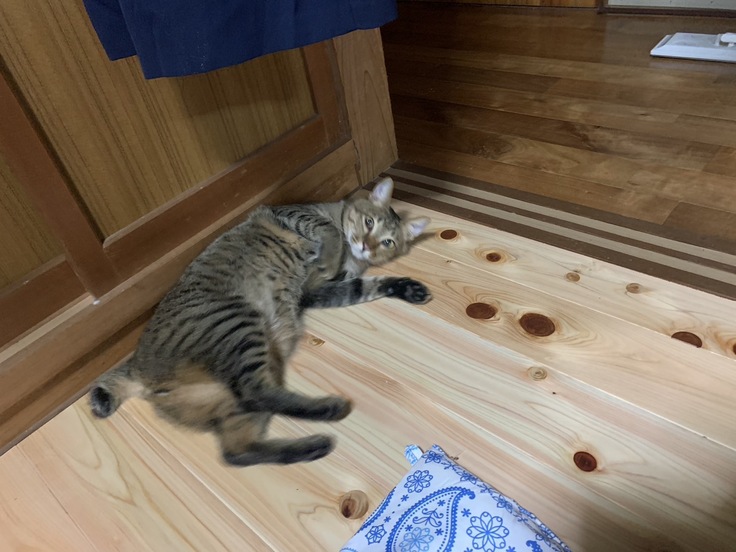 今でも部屋を開けると床下探検に出発しそうなキリシマ軍曹。たぶん凄く楽しかったのだと思います。ですが、そう何度も出かけられては私たちも気が気ではありません。